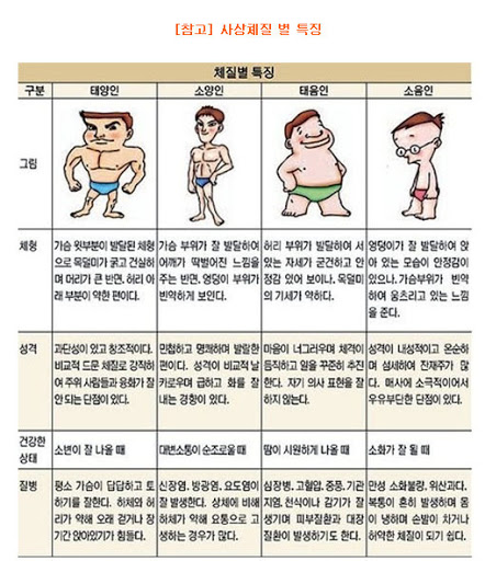 소양인은 성격이 급하고, 활동량이 많은 편이라 다른 체질에 비해 살이 잘 찌지 않는다.