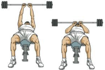 가슴하부~ 명치라인 부근으로 바벨을 삼두근으로 무게를 받으며