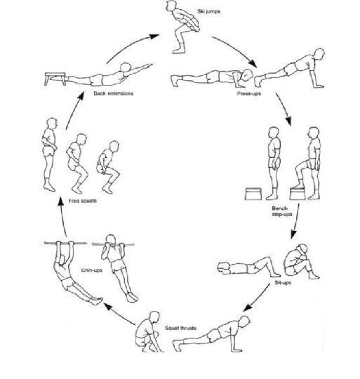 서킷 트레이닝은 운동 동작 4~6가지를 운동사이 휴식시간 없이